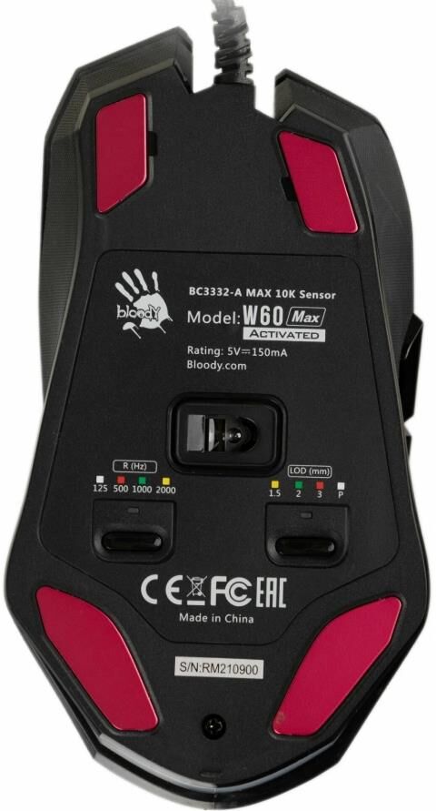 Мышь проводная A4Tech Bloody W60 Max черный, 10000 dpi, USB, кнопки - 10