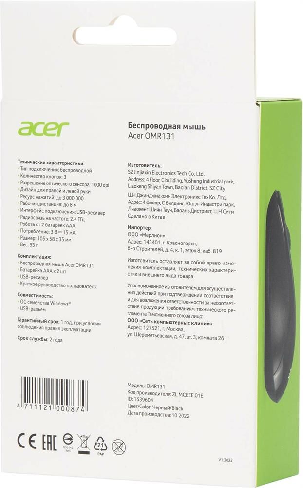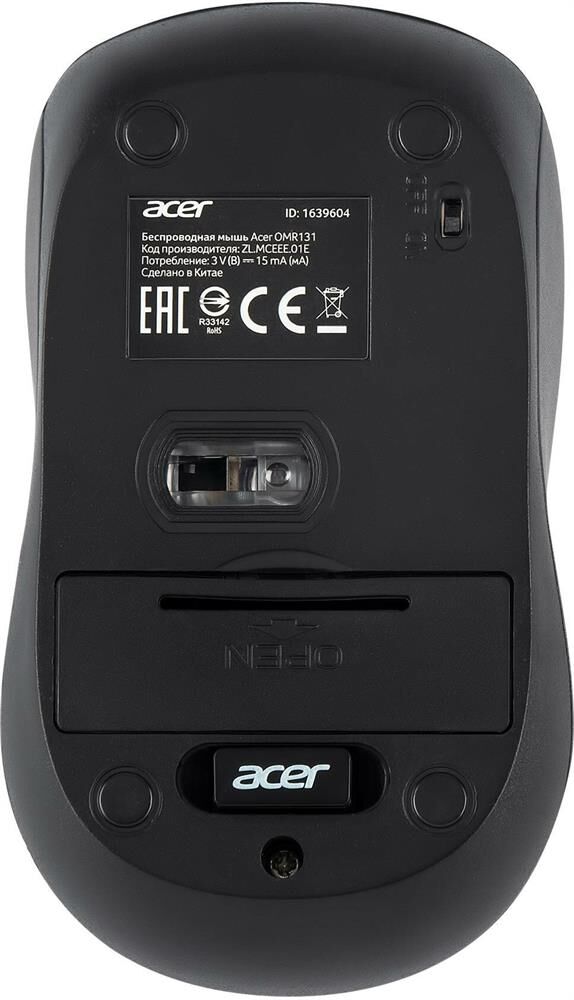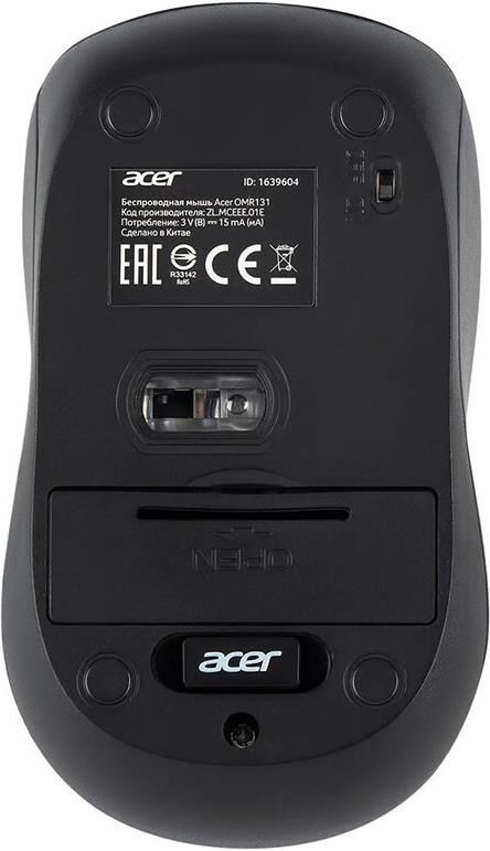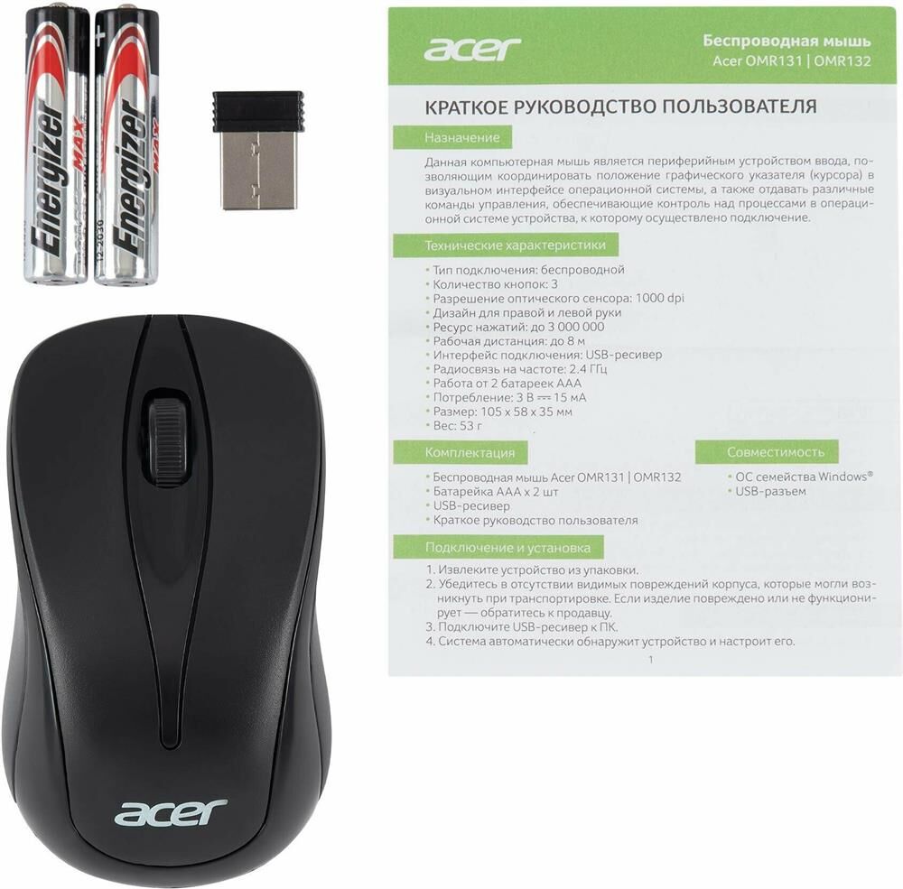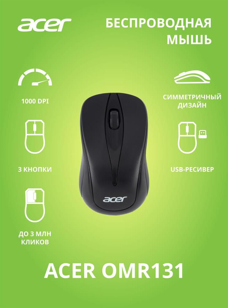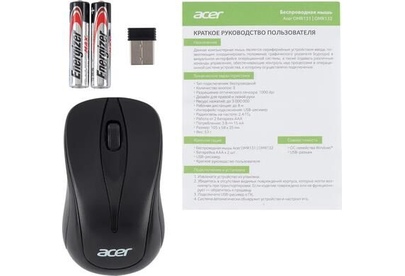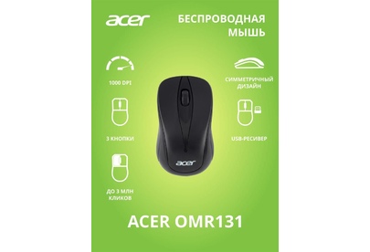 Мышь беспроводная ACER Мышь OMR131 черный оптическая (1000dpi) беспроводная USB для ноутбука (2but)
