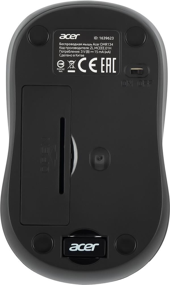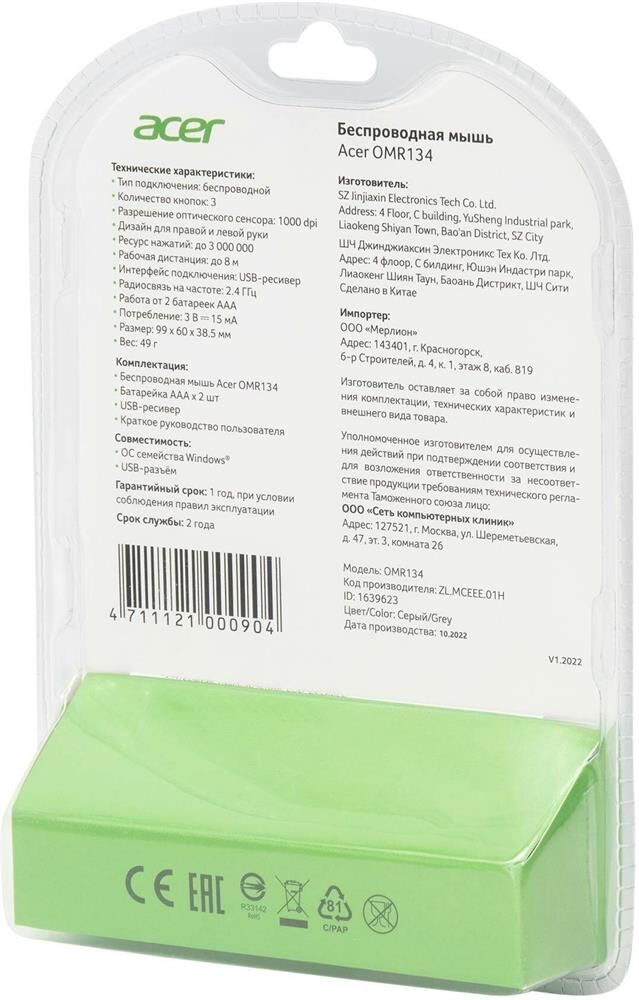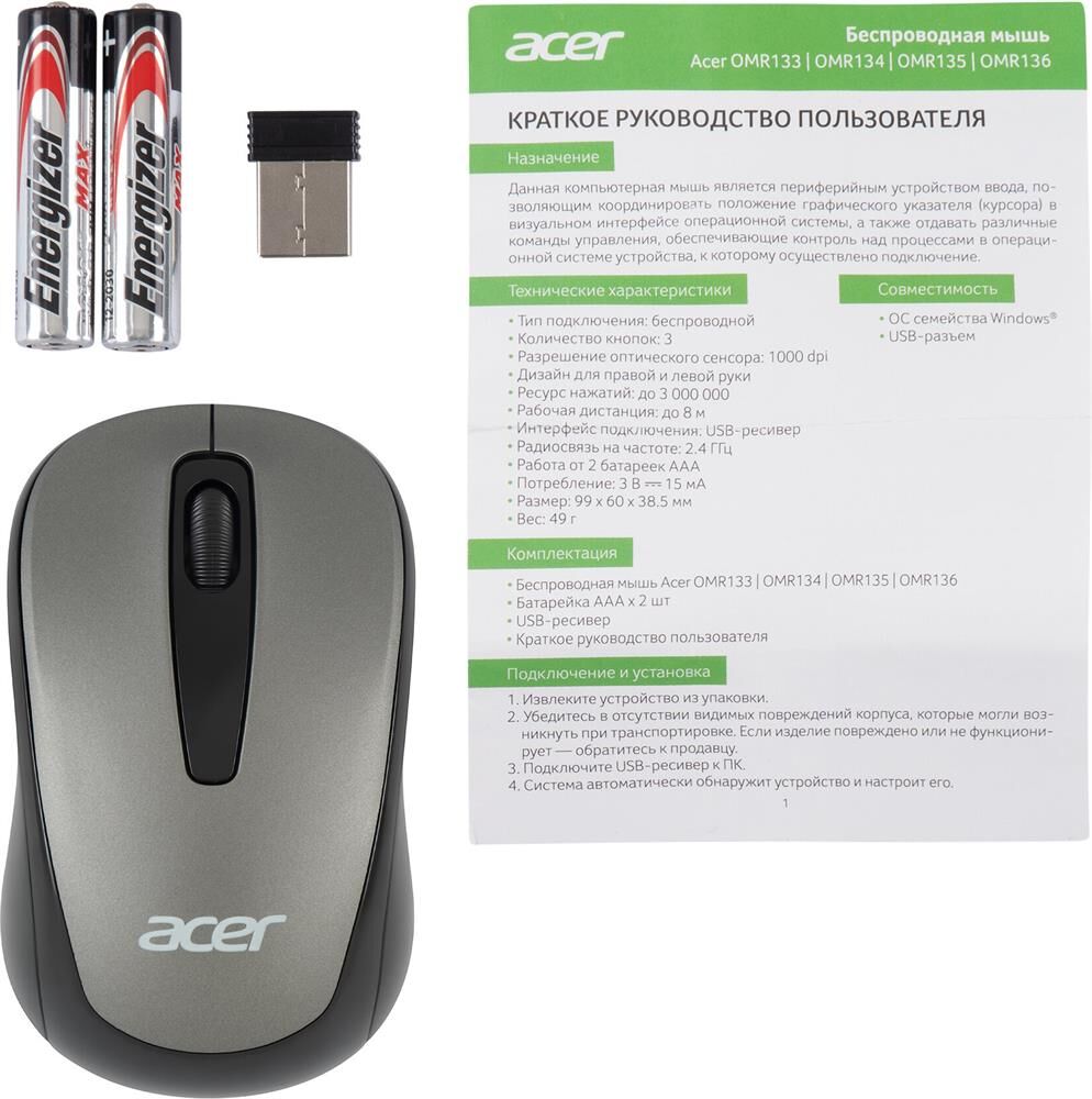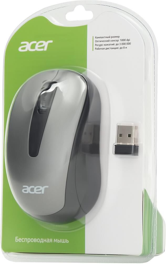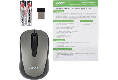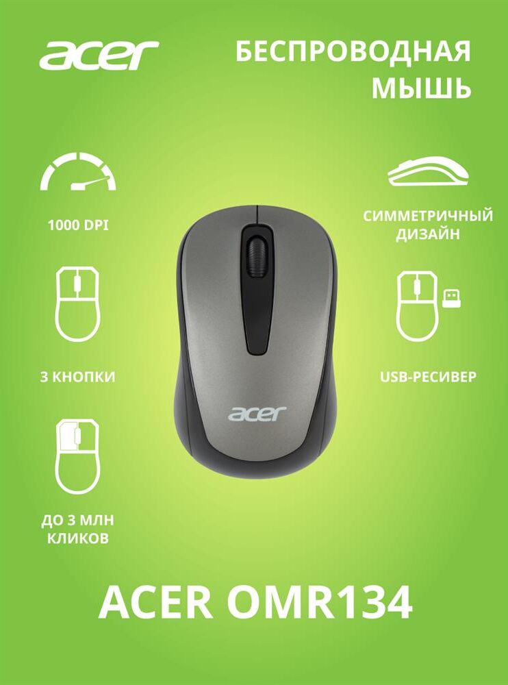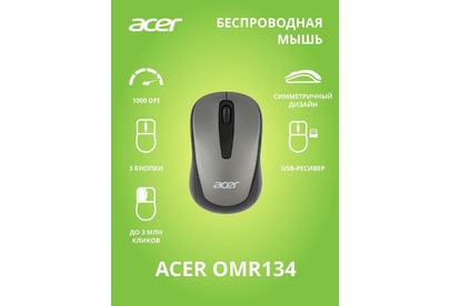 Мышь беспроводная ACER Мышь OMR134 серый оптическая (1000dpi) беспроводная USB для ноутбука (2but)