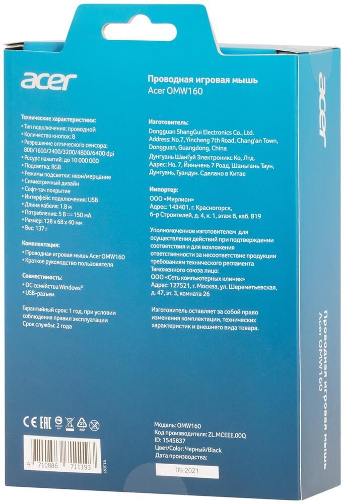 Мышь беспроводная ACER OMW160 черный (ZL.MCEEE.00Q)
