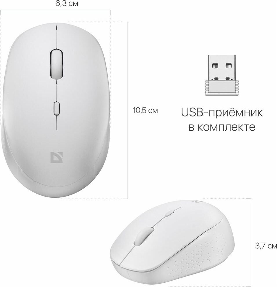 Мышь беспроводная DEFENDER (52028) Auris MB-027 белый