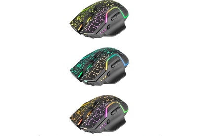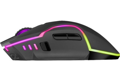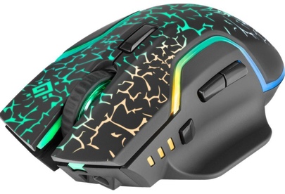 Мышь игровая, беспроводная, интерфейс USB, количество кнопок - 6, колесо прокрутки, емкость аккумулятора - 300 мА·ч, изменяемое разрешение 1200 / 2400 / 3200 dpi, Windows 2000/XP/Vista/7/8/10, Mac OS X10, радужная подсветка, радиус действия -до 10 м.