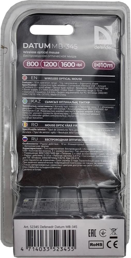 Мышь беспроводная DEFENDER (52345) Datum MB-345