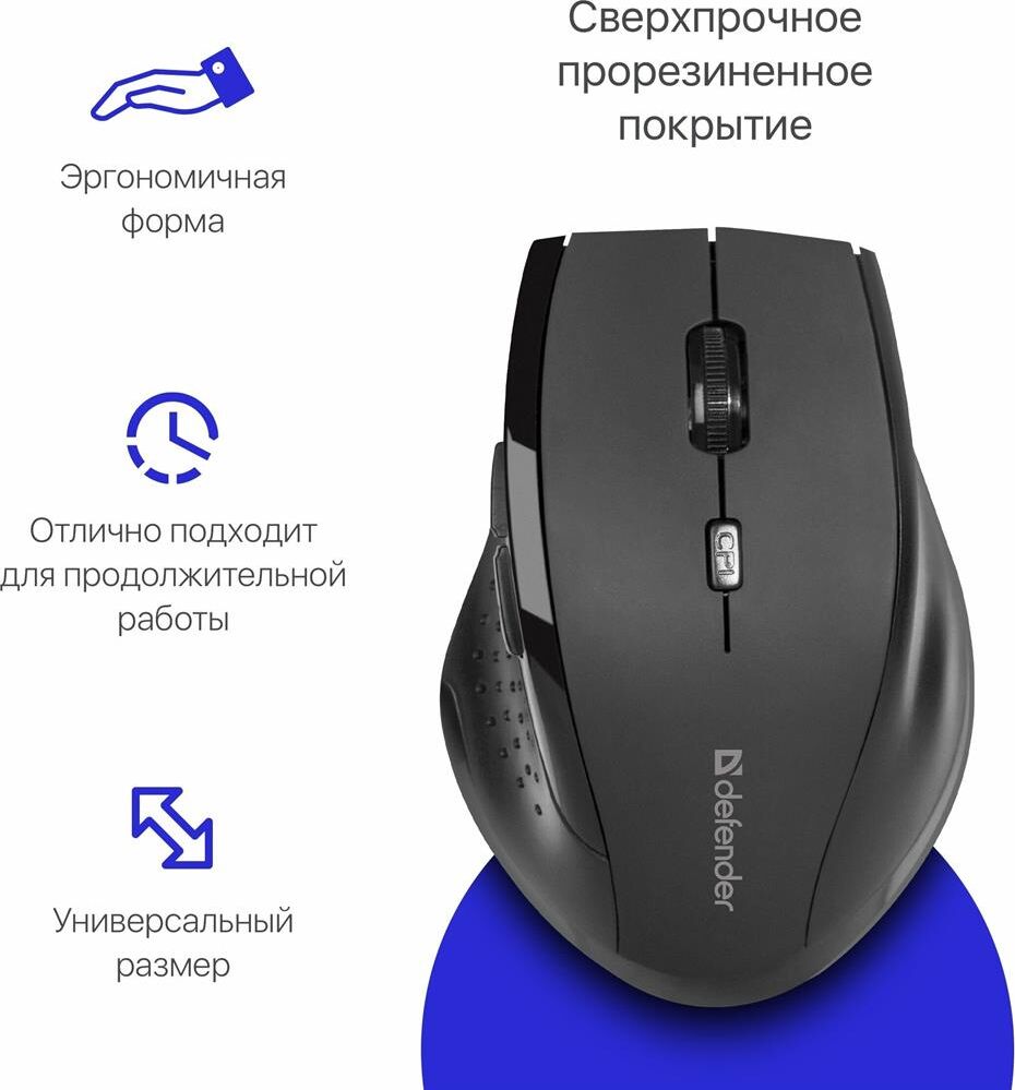 Мышь беспроводная DEFENDER (52365) Accura MM-365 черный