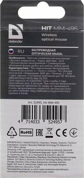 Мышь беспроводная DEFENDER (52495) HIT MM-495