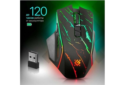 Мышь игровая, беспроводная, интерфейс USB, количество кнопок - 7, колесо прокрутки, емкость аккумулятора - 400 мА·ч, изменяемое разрешение 1200 / 2400 / 3200 dpi, Windows 2000/XP/Vista/7/8/10, Mac OS X10, радиус действия -до 10 м.