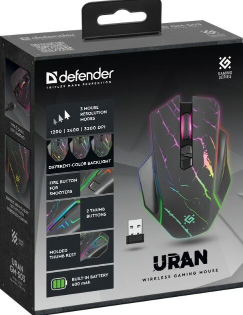 Мышь беспроводная DEFENDER (52503) Uran GM-503 черный