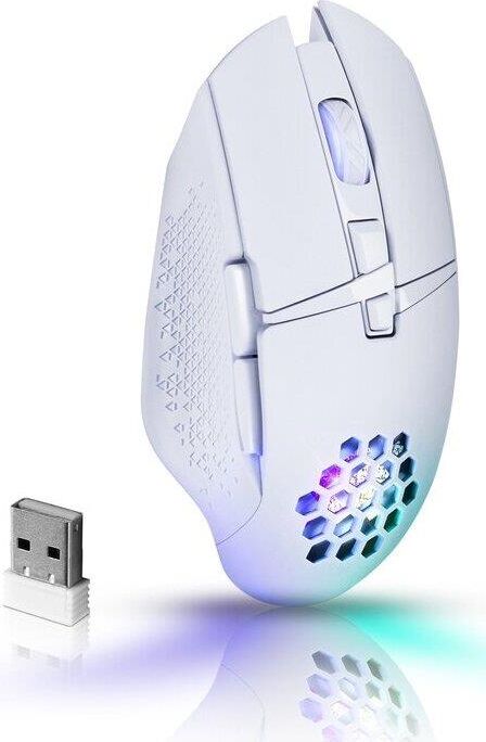 Мышь игровая, беспроводная, интерфейс USB, количество кнопок - 6, колесо прокрутки, емкость аккумулятора - 400 мА·ч, изменяемое разрешение 1200 / 2400 / 3200 dpi, Windows 2000/XP/Vista/7/8/10, Mac OS X10, переливающаяся подсветка, радиус действия -до 10 м.