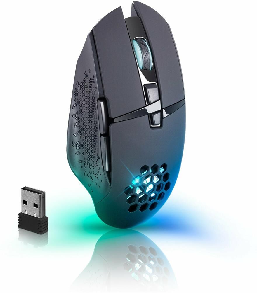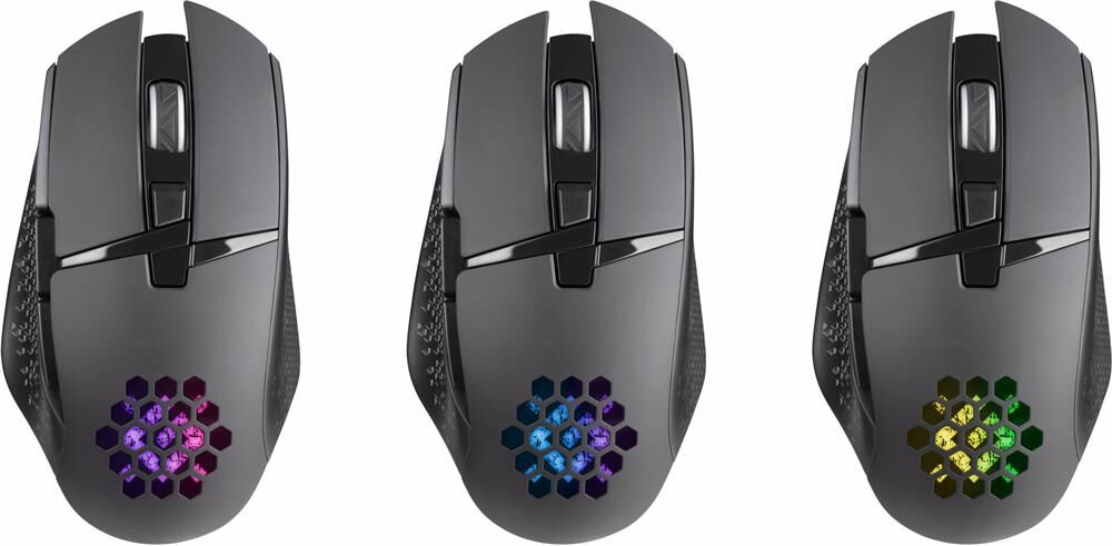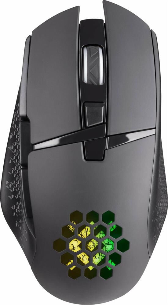 Мышь игровая, беспроводная, интерфейс USB, количество кнопок - 6, колесо прокрутки, емкость аккумулятора - 400 мА·ч, изменяемое разрешение 1200 / 2400 / 3200 dpi, Windows 2000/XP/Vista/7/8/10, Mac OS X10, переливающаяся подсветка, радиус действия -до 10 м.