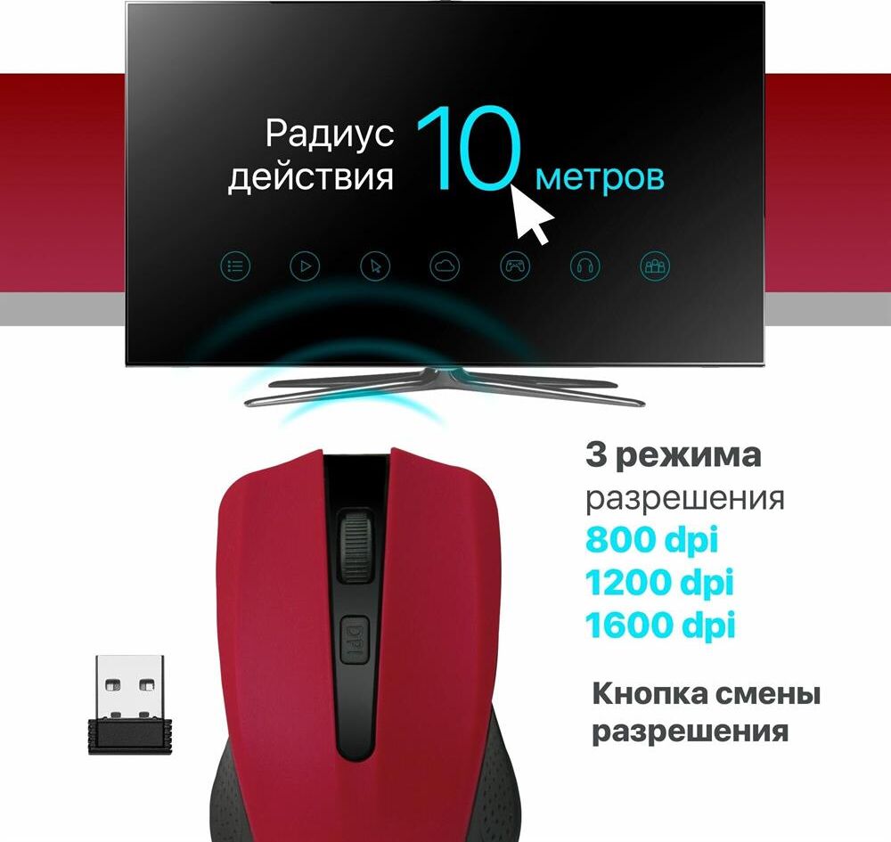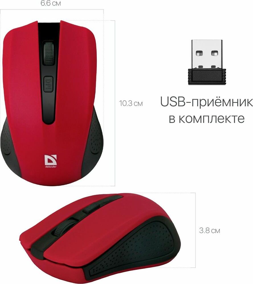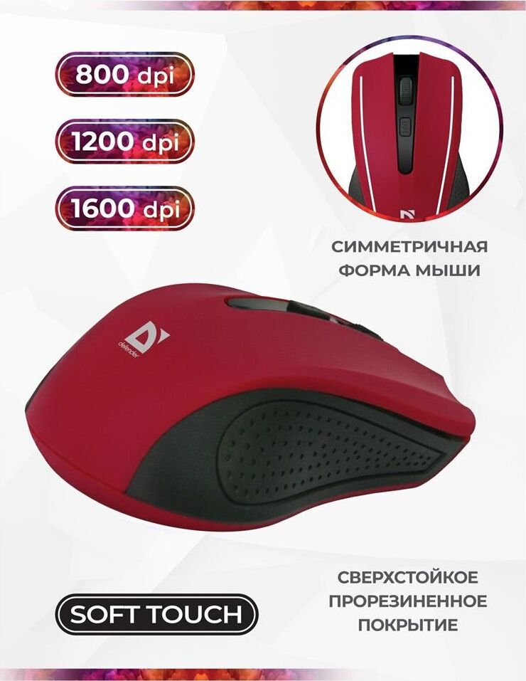 Мышь беспроводная DEFENDER (52937) ACCURA MM-935 красный