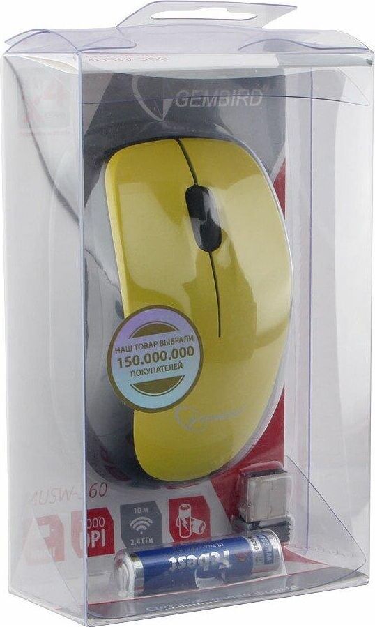 Мышь беспров. Gembird MUSW-360-LM, 2.4ГГц, лазерный лимон, мини, 3кн, 1000DPI, блистер