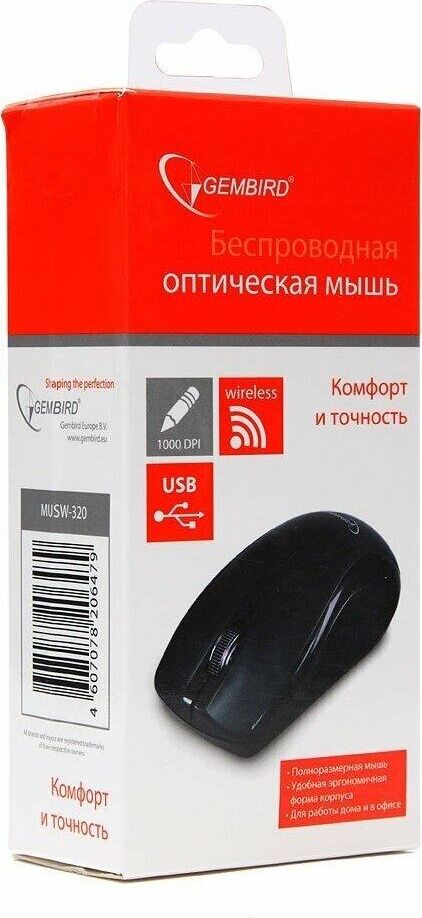 Мышь беспроводная GEMBIRD (17378) MUSW-221-R, чёрный/красный