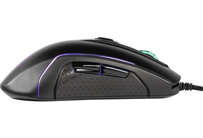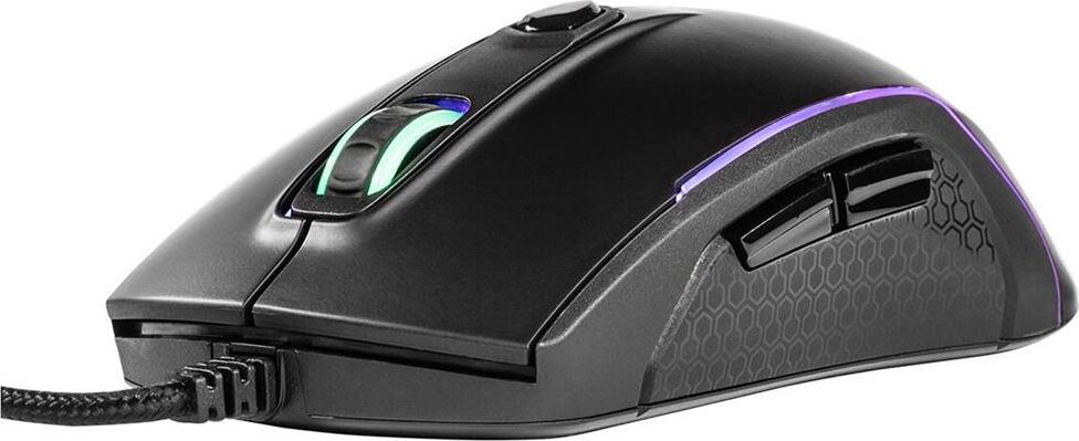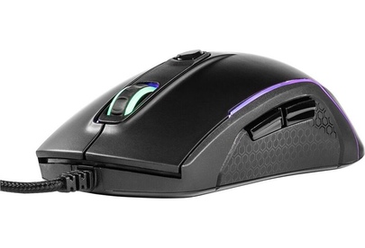 Симметричный дизайн. Настраиваемая RGB-подсветка. Оптический сенсор Avago 3050. 8 удобно расположенных кнопок. Кабель в оплетке. Оптимизированный дизайн для геймеров. Встроенные утяжелители.
