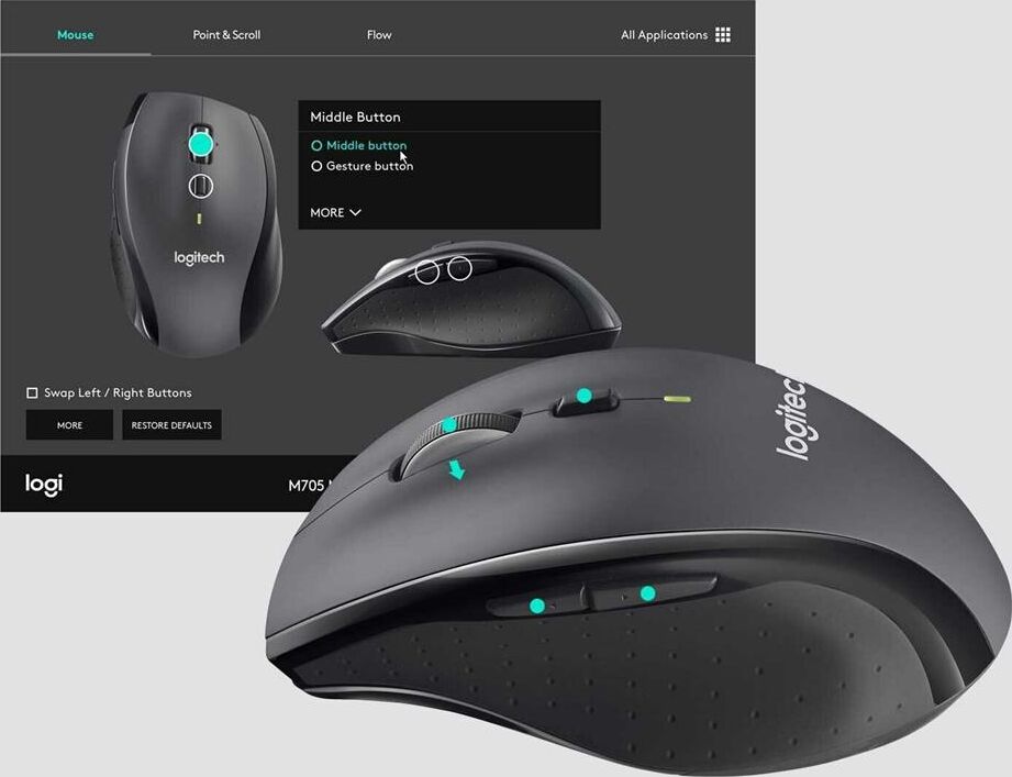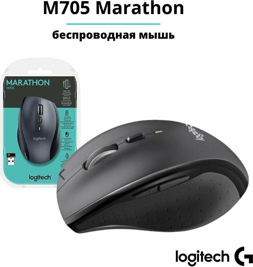 Мышь беспроводная LOGITECH Мышь M705 серый/черный оптическая 1000dpi беспров. USB для ноутбука 5but (910-001964)