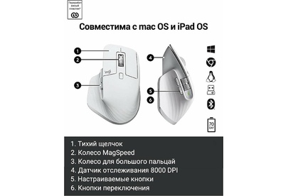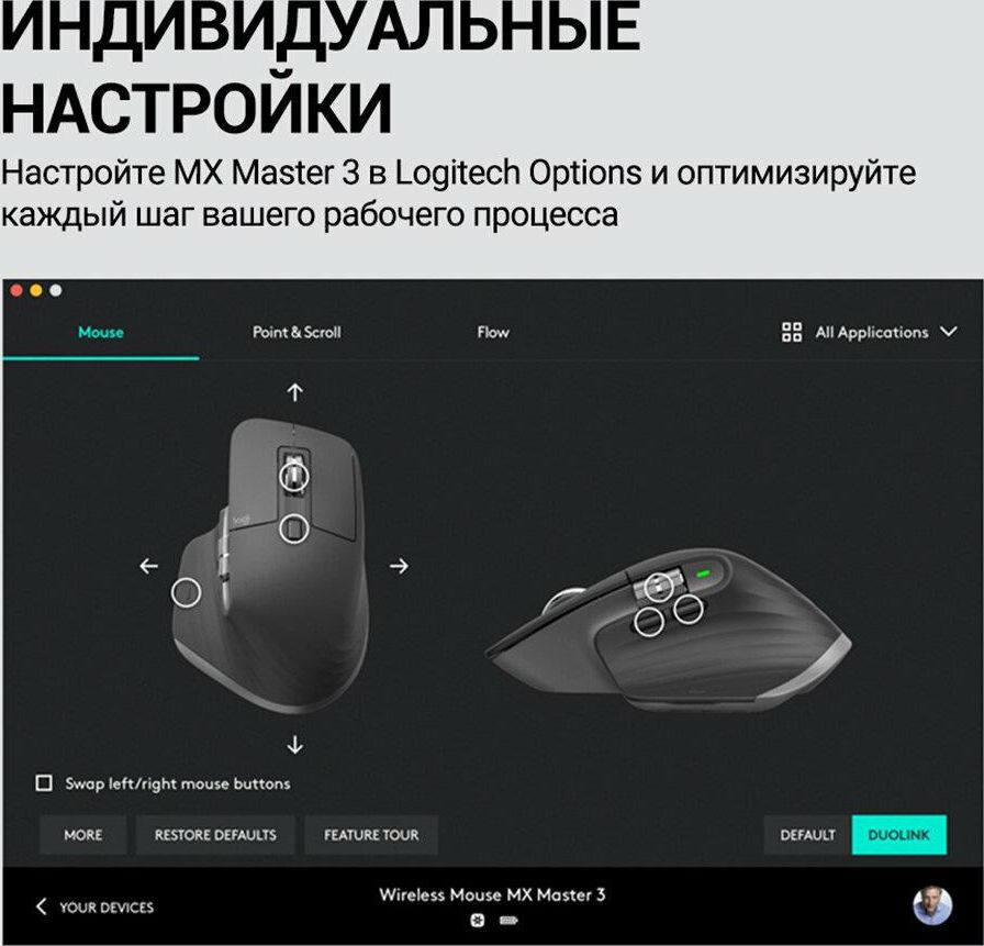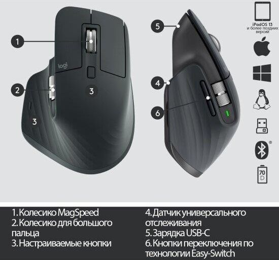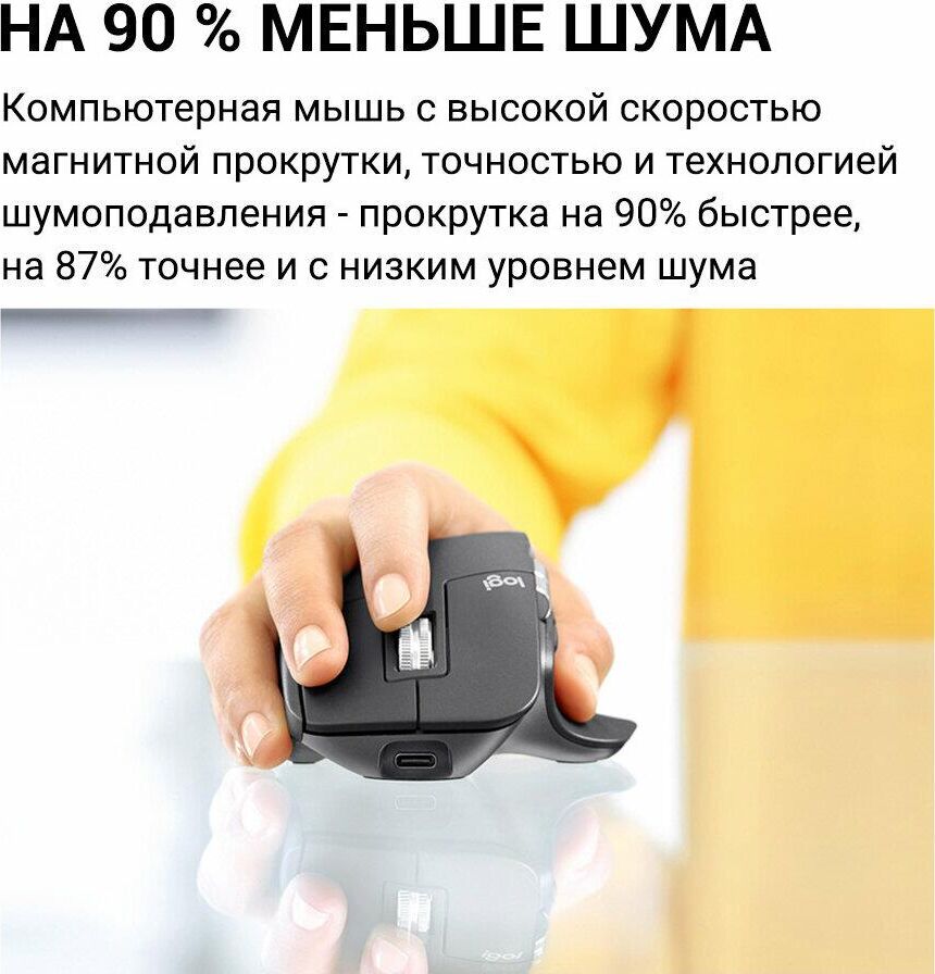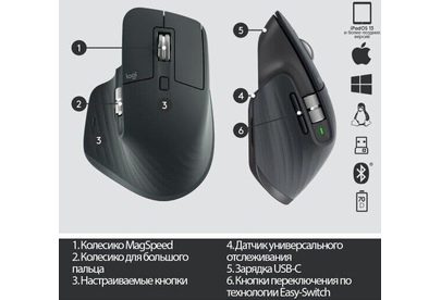 Мышь беспроводная LOGITECH Мышь MX Master 3S графитовый оптическая 8000dpi беспров. BT/Radio USB 5but (910-006565)