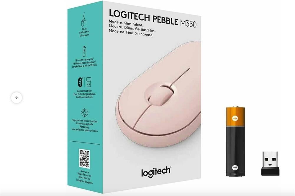 Мышь беспроводная LOGITECH Мышь Pebble M350 розовый оптическая 1000dpi беспров. BT USB 2but (910-005575)