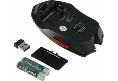 Оптическая мышь, 6 кнопок, колесо прокрутки, разрешение 800/1600 dpi, беспроводная, 2.4gHz ,рдиус действия до 10 метров, сверхкомпактный приёмник с интерфейсом USB