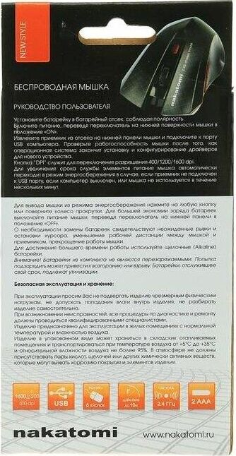 Мышь беспроводная NAKATOMI MRON-04U черный