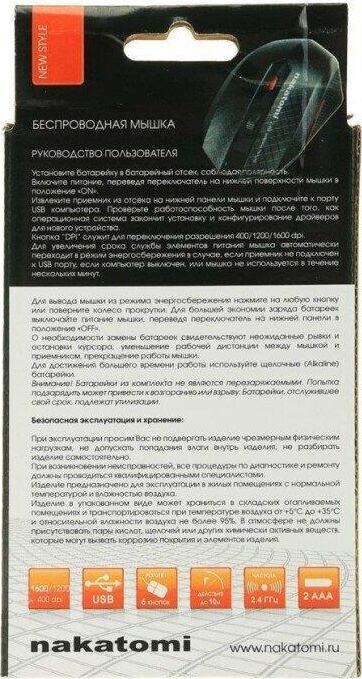 Мышь беспроводная NAKATOMI MRON-08U черный