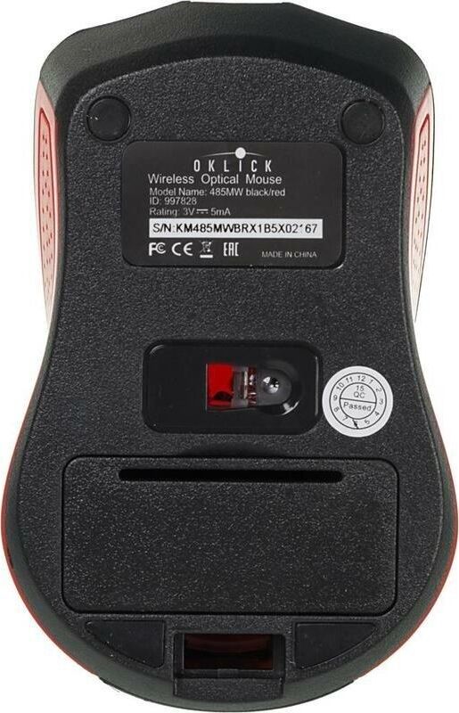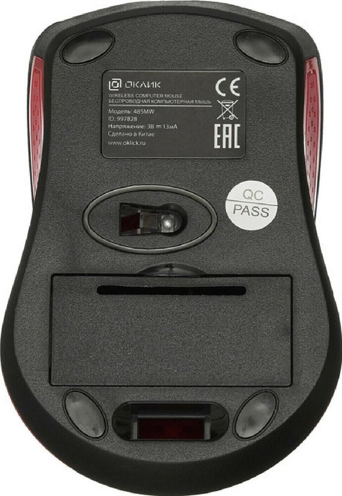 Мышь беспроводная OKLICK 485MW черный/красный оптическая (1200dpi) беспроводная USB (2but)