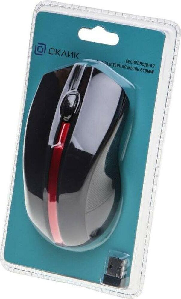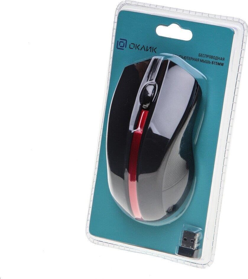 Мышь беспроводная OKLICK 615MW черный/красный оптическая (1000dpi) беспроводная USB (2but)