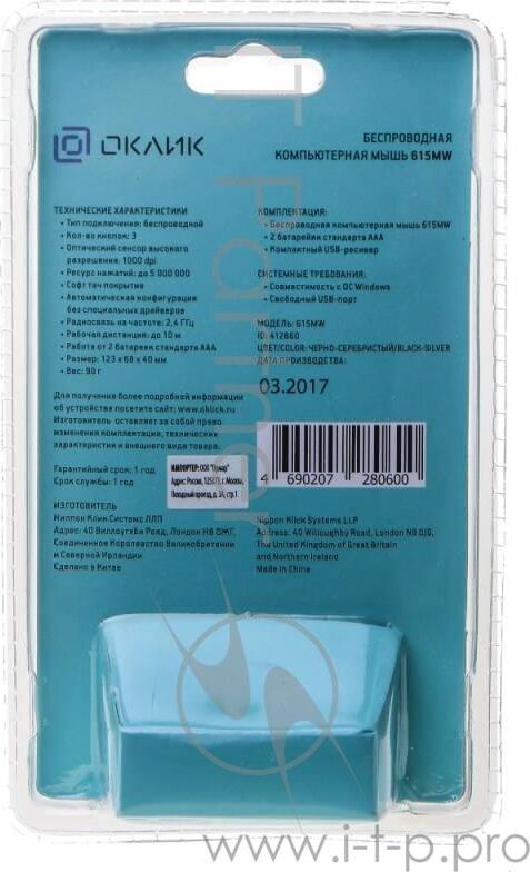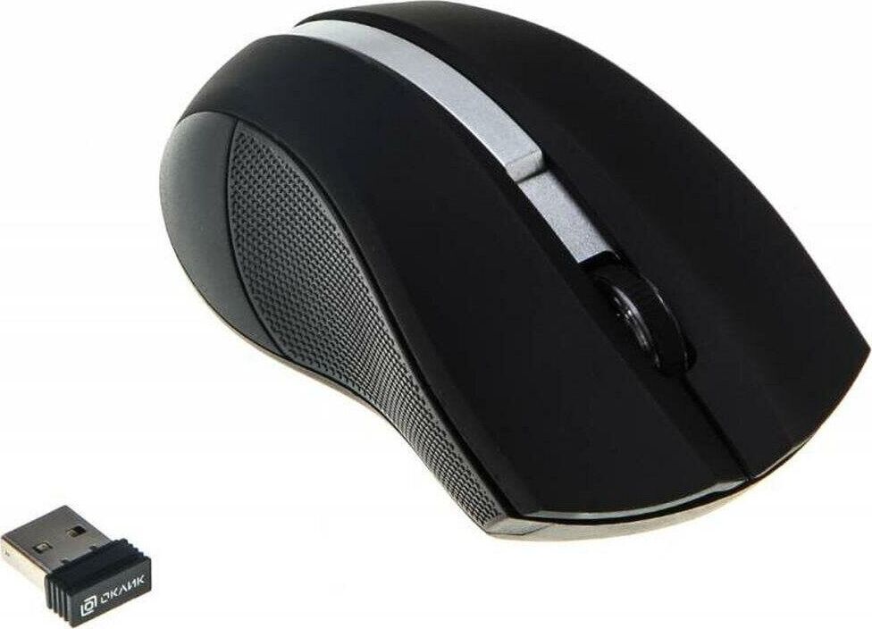 Мышь беспроводная OKLICK 615MW черный/серебристый оптическая (1000dpi) беспроводная USB (2but)