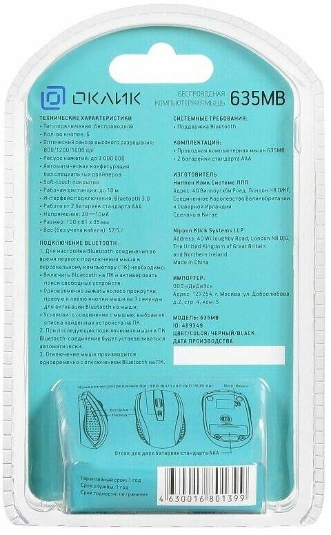 Мышь беспроводная OKLICK Мышь Оклик 635MB черный оптическая 1600dpi беспров. BT для ноутбука 6but (489349)