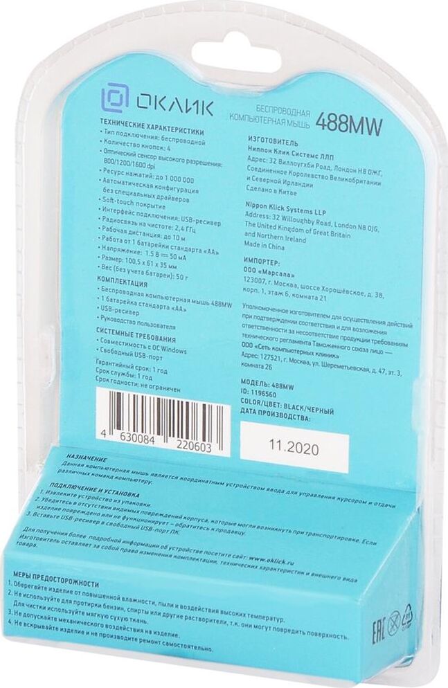 Мышь беспроводная ОКЛИК 488MW черный/черный