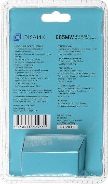 Мышь беспроводная ОКЛИК 665MW черный USB