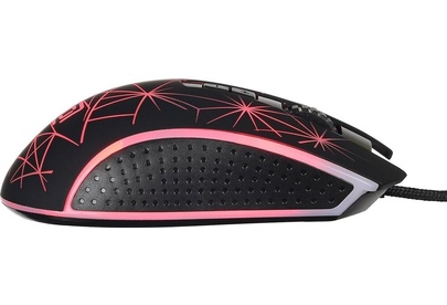 Мышь игровая, проводная, интерфейс USB, количество кнопок - 7, изменяемое разрешение сенсора - 1200/1600/2400/3200 dpi, подсветка, кабель в тканевой оплетке, длина кабеля - 1,5 м .