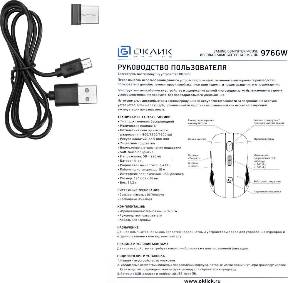 Основные характеристики Технология оптическая Разрешение сенсора, макс.3200 dpi Тип соединения мыши беспроводная Интерфейс подключения USB Для геймеров ДА Количество кнопок 6 Колесо прокрутки ДА Радиус действия мыши 10 м Подключение по USB ДА Поддержка разрешений 800/1200/1600/2400/3200 dpi Питание Питание от собственных аккумуляторов Корпус Дизайн для правой руки Специальное покрытие корпуса soft touch Цвет оформления черный Размеры мыши 62x126x32мм Вес (мыши) 87.2 грамм Особенности Изменение чувствительности сенсора кнопкой ДА Максимальное ускорение 10 G Особенности Беспроводная компьютерная мышь. Встроенный Li-Ion аккумулятор на 400mAh,тефлоновые ножки для лучшего скольжения, многоцветная подсветка (с возможностью отключения), настройка оптимального разрешения Срок гарантии 12 мес.