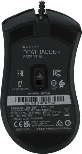 Мышь беспроводная RAZER Мышь проводная DeathAdder Essential, игровая, оптическая, USB, 6400dpi, черный [rz01-03850100-