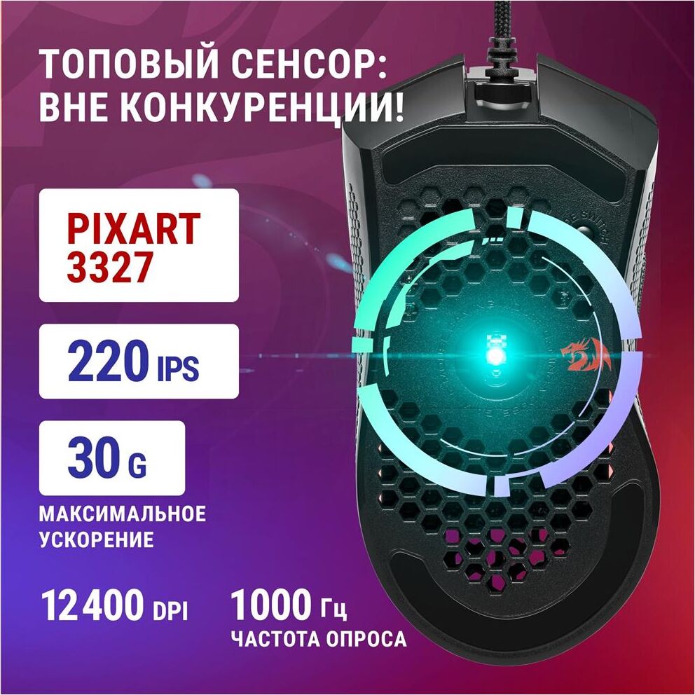 Мышь беспроводная REDRAGON (71122) Storm Basic 12400 DPI, черная, легкая