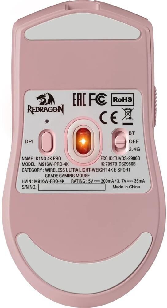 Мышь беспроводная REDRAGON (72213) K1ng 4K Pro, розовый