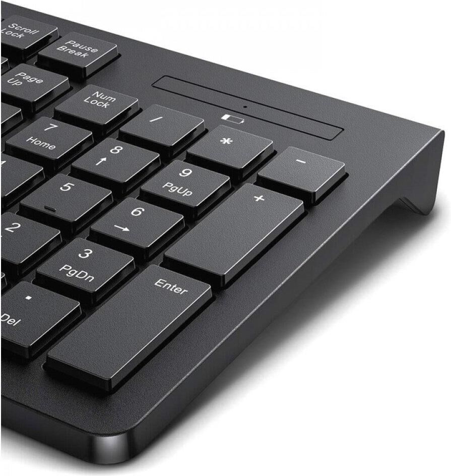 Вес: 420 г Радиус действия: до 10 м Интерфейс подключения: USB Количество „горячих“ клавиш: 12 Тип клавиатуры: Мембранная Цвет клавиатуры: черный Питание клавиатуры: 1 батарейка ААА Размер клавиатуры: 437*138*20 мм