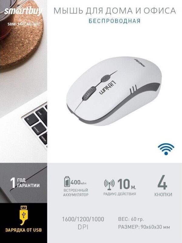 Мышь беспроводная SMARTBUY SBM-344CAG-WG, белый/серый