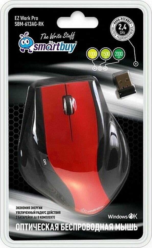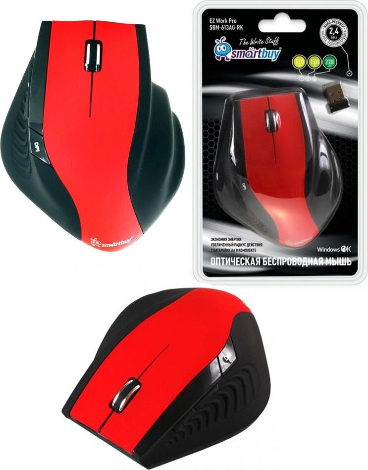 Мышь беспроводная SMARTBUY SBM-613AG-R/K, красный