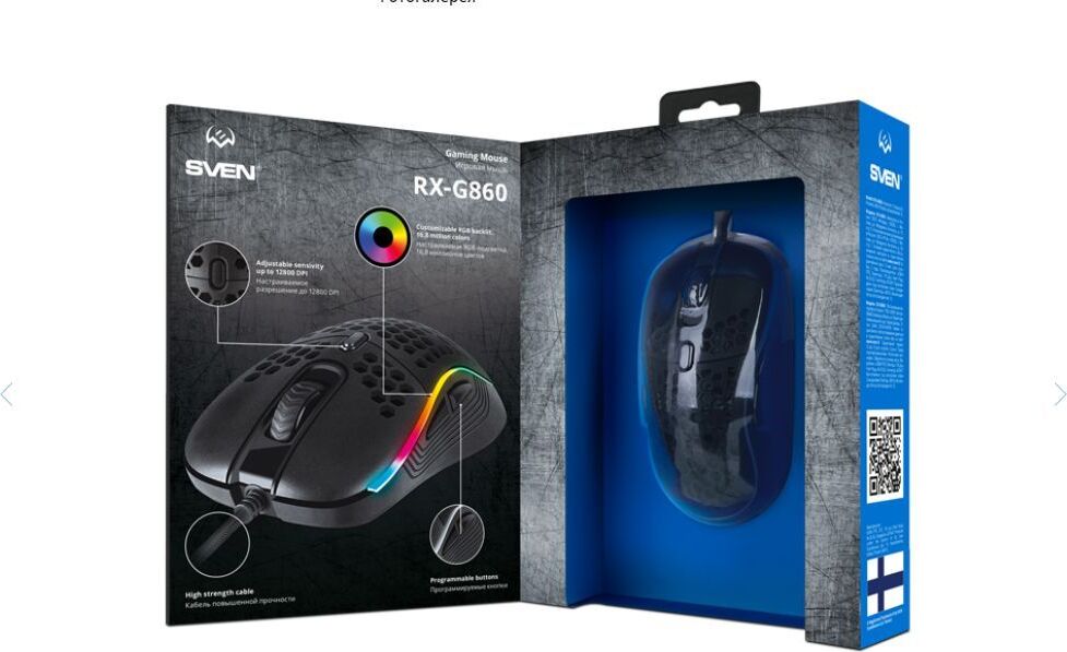 SVEN RX-G860 Программируемая игровая мышь Программируемые кнопки с возможностью настройки макросов Максимальное разрешение 12800 DPI Синхронизация подсветки со звуковыми эффектами на ПК Кнопка переключения DPI Боковые кнопки c двух сторон Настраиваемая RGB-подсветка 16,8 миллионов цветов Тип мыши оптическая Совместимость c OC Windows Количество кнопок, шт 7 + 1 (колесо прокрутки) Колесо прокрутки есть Разрешающая способность, DPI 200 — 12800 Интерфейс USB Наработка на отказ, нажатий свыше 20 000 000 Соответствие стандартам FCC, CE, ЕАС Длина кабеля, м 1,8 Размеры изделия (Ш ? В ? Г), мм 126 ? 66,5 ? 39 Вес, г 116 Цвет черный