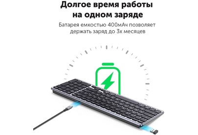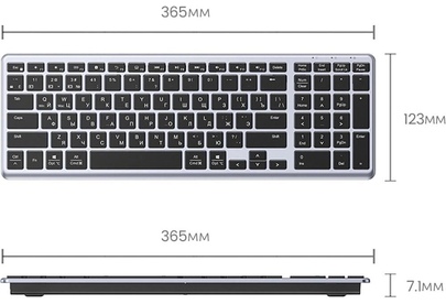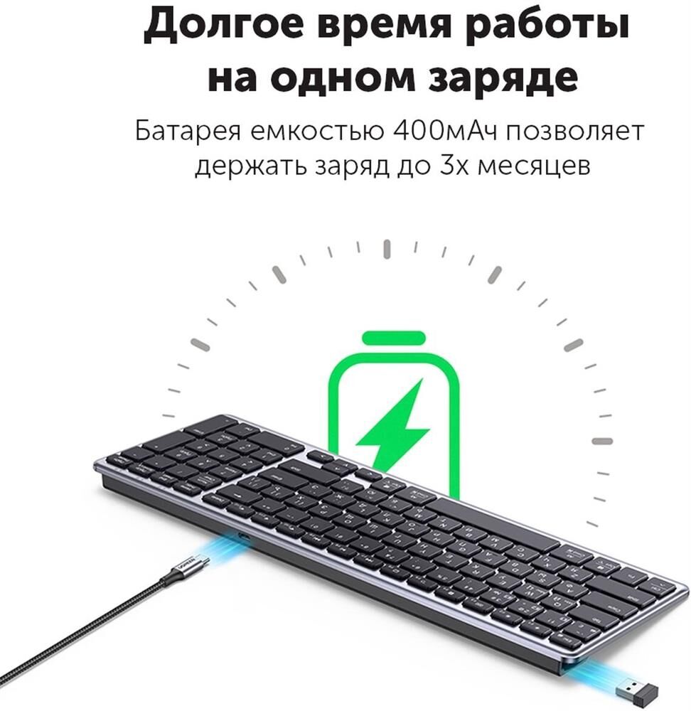 Мышь беспроводная UGREEN Клавиатура беспроводная KU005 (15956) 2.4GHz Bluetooth5.0 Ultra Slim Wireless Keyboard. Цвет: