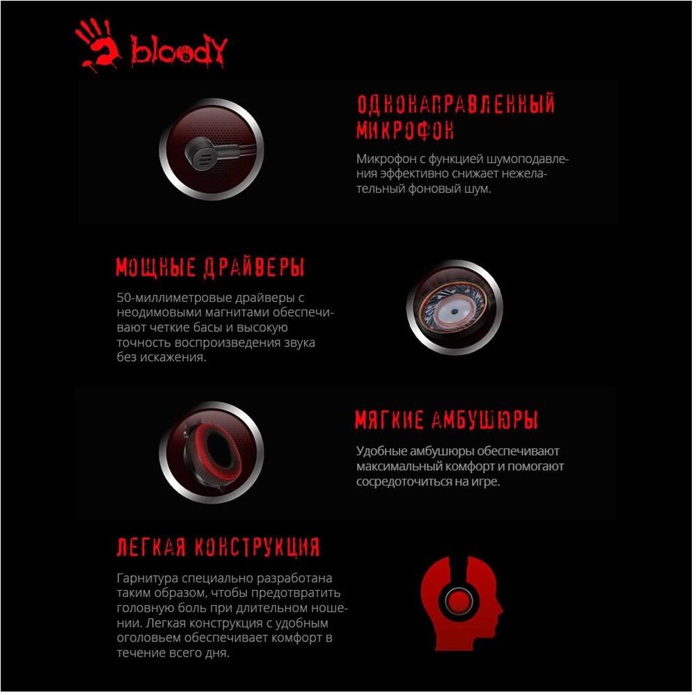 Наушники A4TECH Bloody G220S черный 2м мониторные USB оголовье (G220S USB/ BLACK)