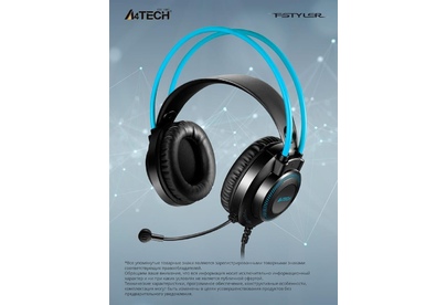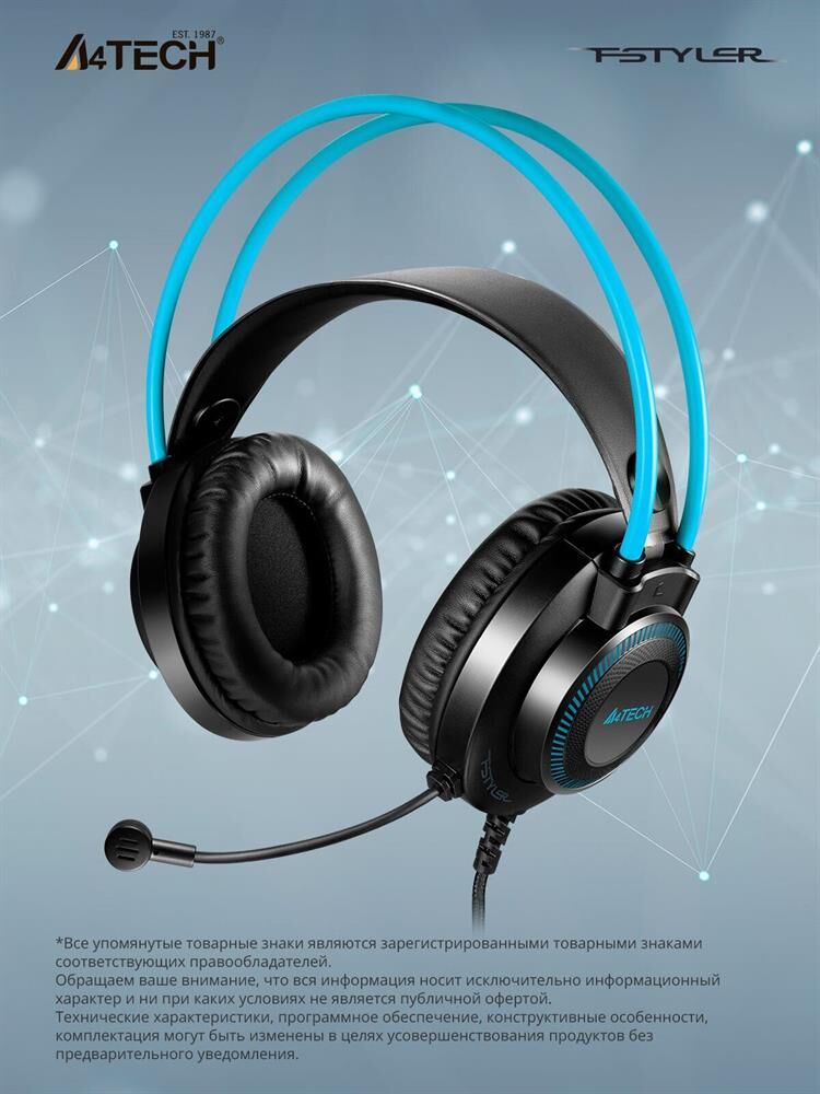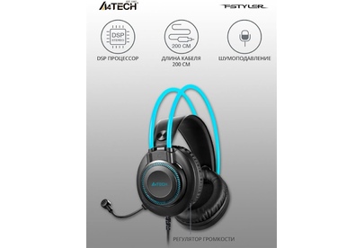 Наушники A4TECH Fstyler FH200U серый/синий 2м накладные USB оголовье (FH200U BLUE)