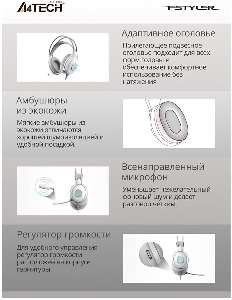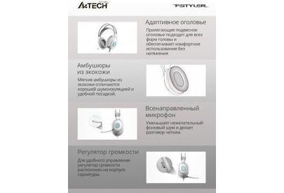 Наушники A4TECH Fstyler FH300U белый 2м мониторные USB оголовье (FH300U WHITE)