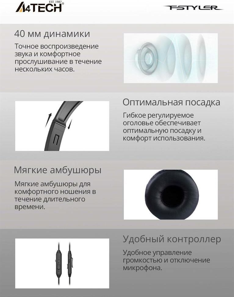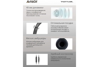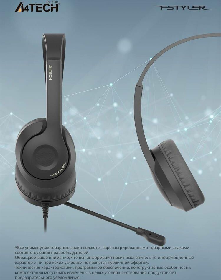 Наушники A4TECH Гарнитура Fstyler FH100U, для компьютера, накладные, проводные, черный [fh100u (stone black)]