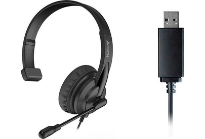 Наушники A4TECH Гарнитура HU-11, для контактных центров, накладные, проводные, моно, черный [hu-11/usb/black]