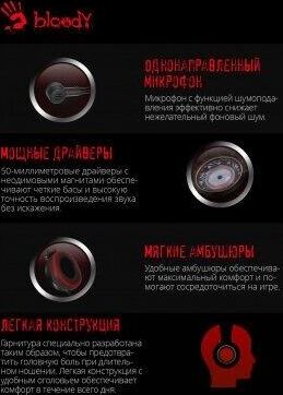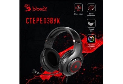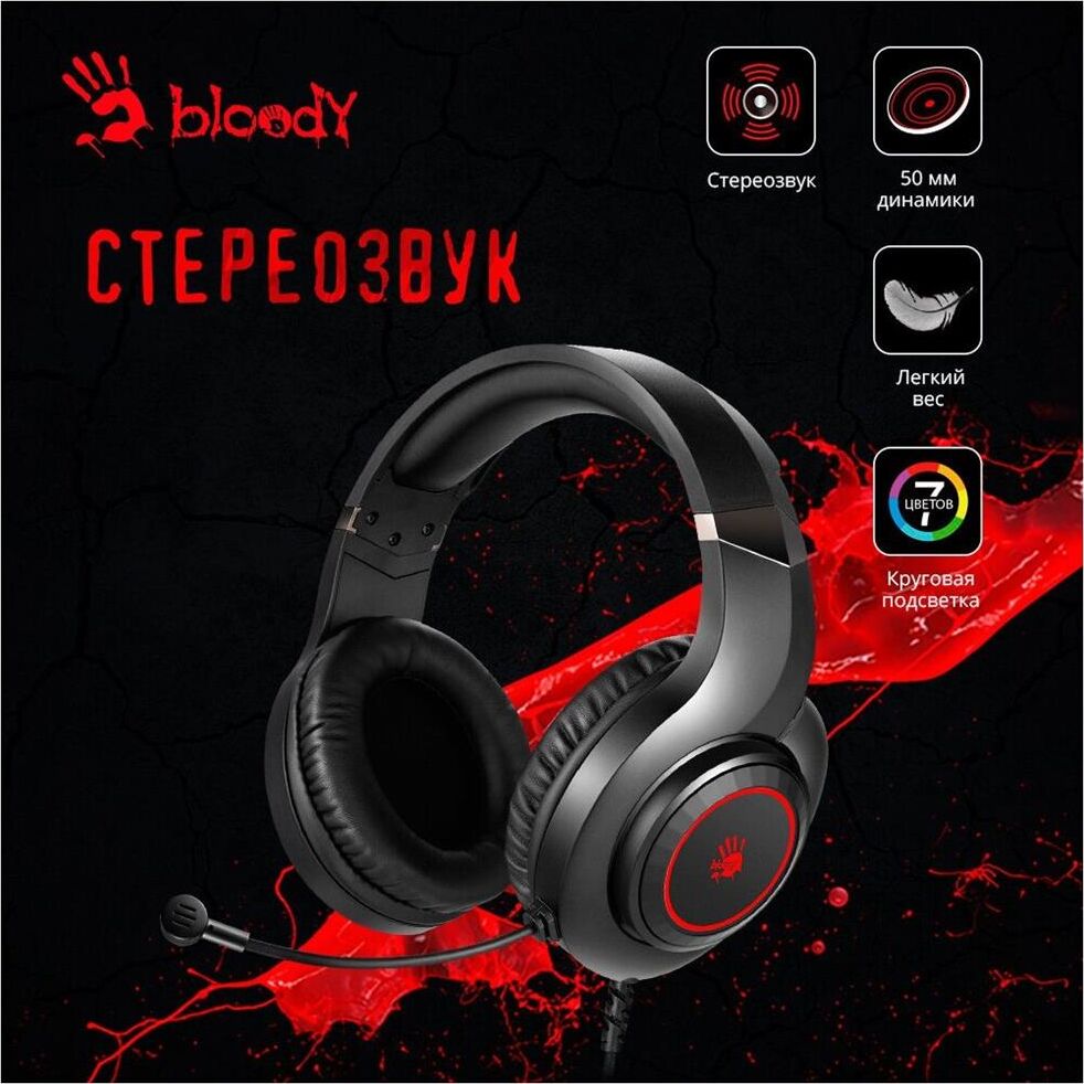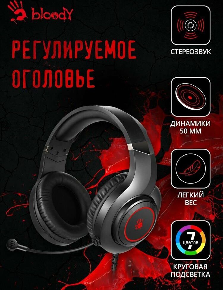 Наушники A4TECH Гарнитура игровая Bloody G220, для компьютера, мониторные, проводные, черный [g220 aux3.5-4pi