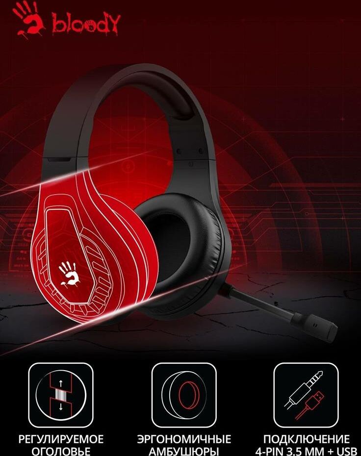 Наушники A4TECH Гарнитура игровая Bloody G230, для компьютера, накладные, проводные, черный