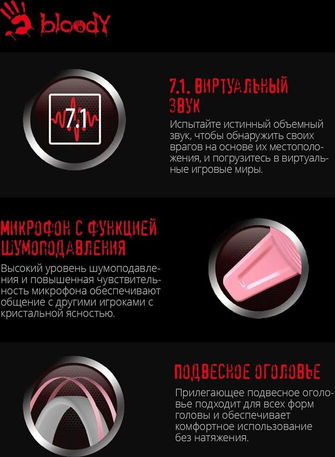 Наушники A4TECH Гарнитура игровая Bloody G521, для компьютера, мониторные, проводные, розовый [g521 ( pink )]