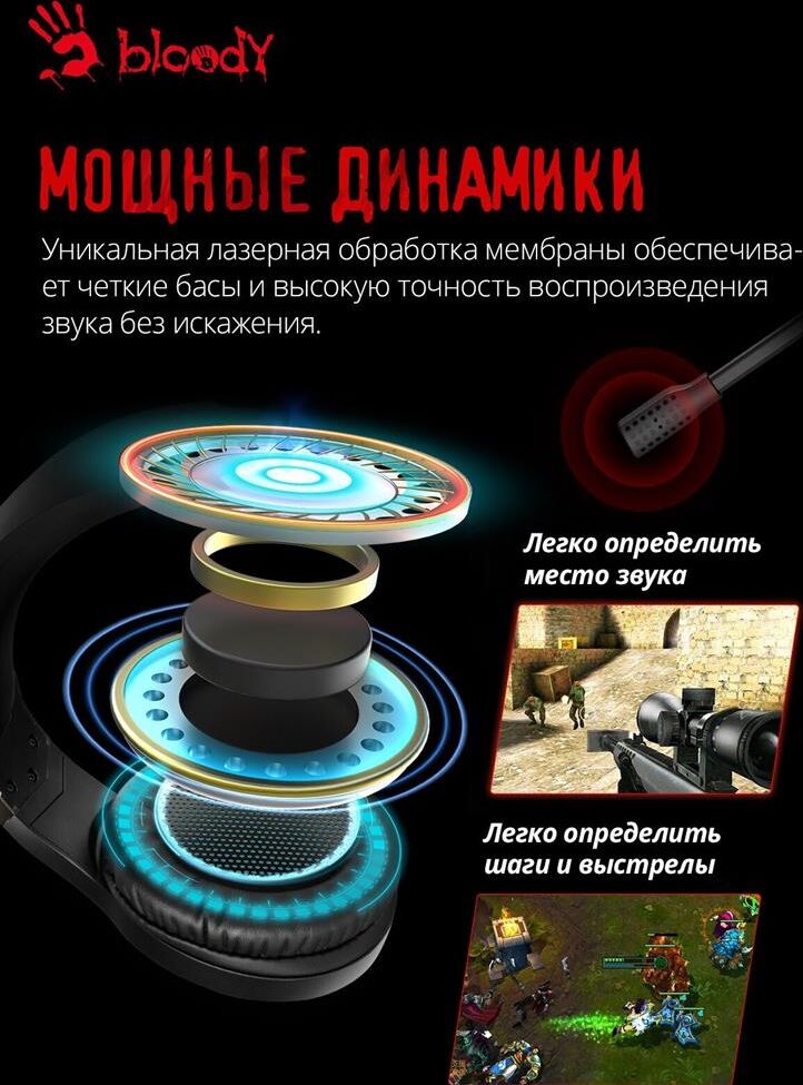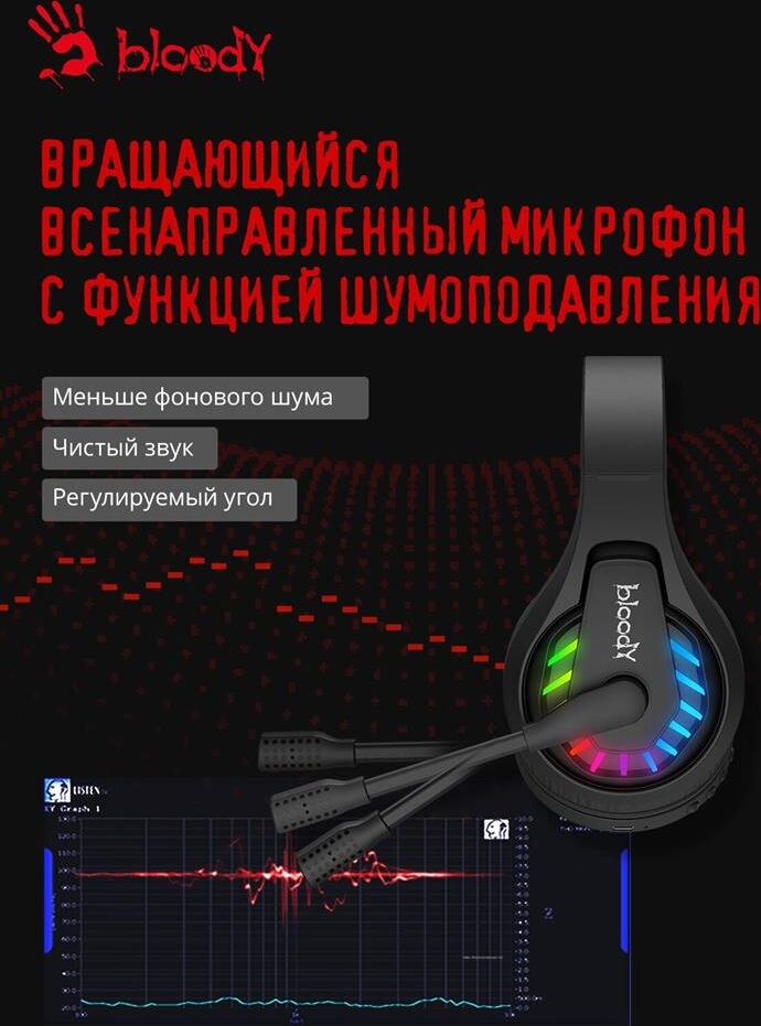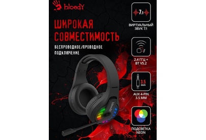 Наушники A4TECH Гарнитура игровая Bloody GR230, для компьютера, мониторные, Bluetooth, черный