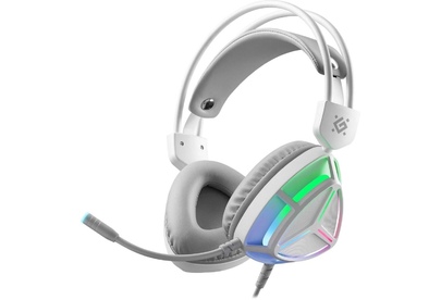 Наушники DEFENDER Гарнитура Prism, для компьютера, накладные, проводные USB/3,5 мм, белый [62450]