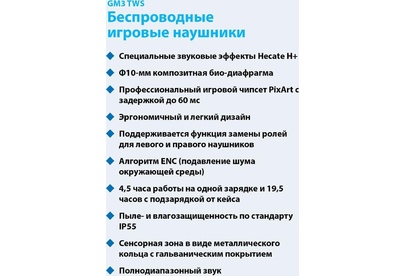 Тип гарнитуры: стерео. Тип, акустический: закрытые. Тип конструкции: вкладыши. Тип соединения гарнитуры: беспроводные bluetooth. Импеданс: 32. Чувствительность динамика: 100. Крепление микрофона: встроенный. Особенности: Игровой режим на базе двух встроенных чипов PAU1901 усиливает звуковые эффекты в играх, ультра низкая задержка при передачи звука - 45мс., Bluetooth версии 5.3. Крепление: в ушной раковине. Диаметр головок излучателей: 13. Выключение микрофона: есть. Шумоподавление микрофона: есть. Для геймеров: да. Чехол для транспортировки: есть. Вес (без шнура): 36. Время работы беспроводной гарнитуры: 5.5. Диапазон работы: 10. Разъем для зарядки: USB Type-C. Коннектор (гарнитура): нет коннектора. Габариты упаковки (ед) ДхШхВ: 0.095x0.095x0.04. Вес упаковки (ед): 0.12. Гарантия: 12 мес.. Частотный диапазон: 20 Гц - 20 кГц. Цвет: белый